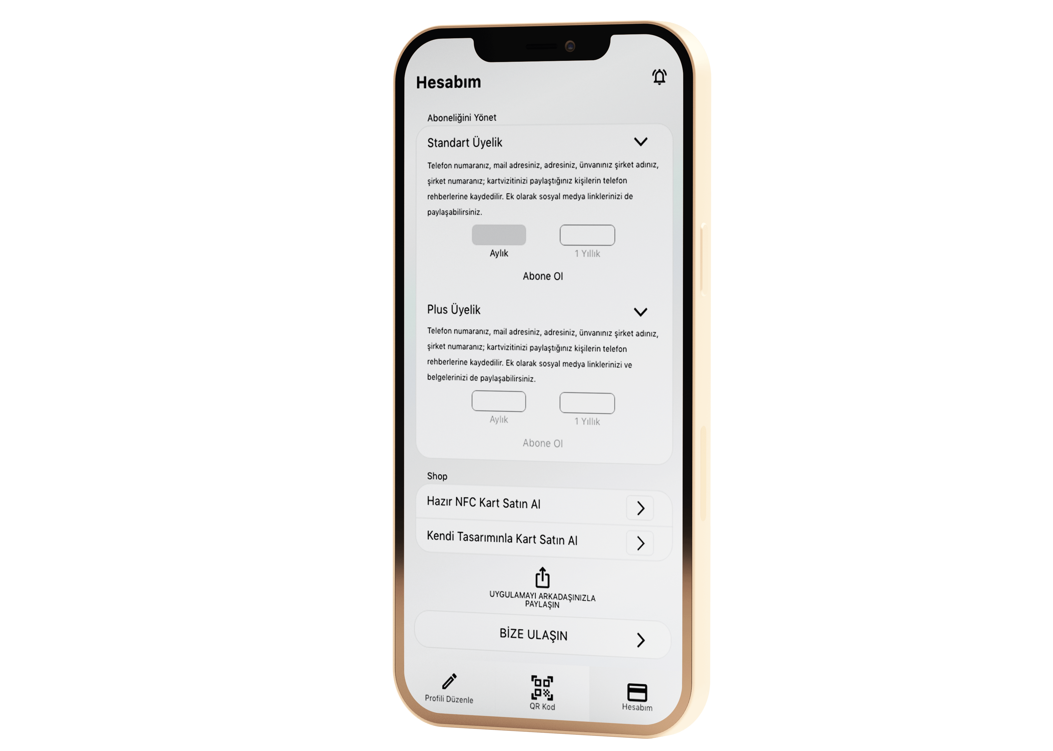 Profilinizi düzenledikten sonra artık QR kodunuzla tüm bilgilerinizi yeni tanıştığınız kişilerle paylaşabilirsiniz. Bilgilerinizi istediğiniz an istediğiniz şekilde değiştirin ve o an kullanmaya devam edin. Üstelik uygulamanızı dilerseniz sizin için tasarlamış olduğumuz birbirinden güzel NFC kartlarla eşleştirin, bilgilerinizi kartınızla paylaşmaya devam edin. Hem de kendi kurumsal tasarımınızla birlikte!